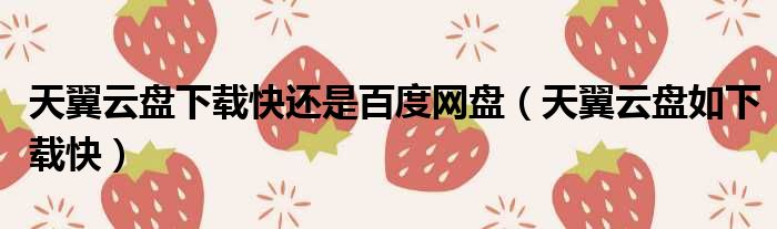 天翼云盘下载快还是百度网盘(天翼云盘如下载快)
