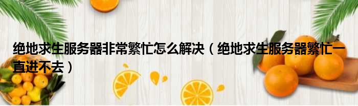 绝地求生服务器非常繁忙怎么解决(绝地求生服务器繁忙一直进不去)