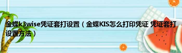 金蝶k3wise凭证套打设置(金蝶KIS怎么打印凭证 凭证套打设置方法)