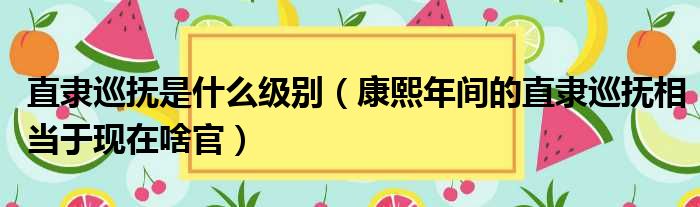 直隶巡抚是什么级别(康熙年间的直隶巡抚相当于现在啥官)