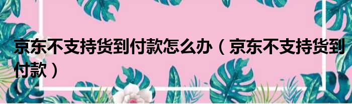 京东不支持货到付款怎么办(京东不支持货到付款)