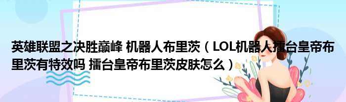 英雄联盟之决胜巅峰 机器人布里茨(LOL机器人擂台皇帝布里茨有特效吗 擂台皇帝布里茨皮肤怎么)