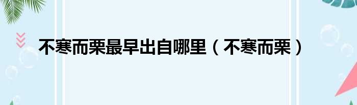 大家好,小东方来为大家解答以上的问题。不寒而栗最早出自哪里,不寒而栗这个很多人还不知道,现在让我们一起来看看吧!