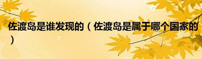 佐渡岛是谁发现的(佐渡岛是属于哪个国家的)