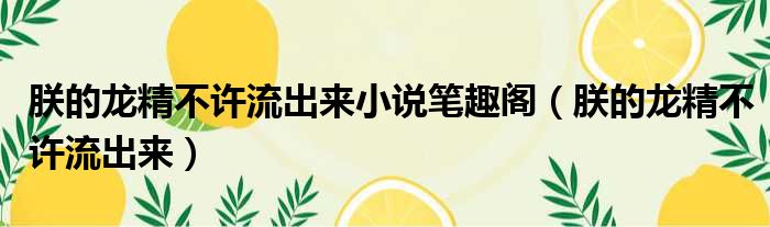 朕的龙精不许流出来小说笔趣阁(朕的龙精不许流出来)