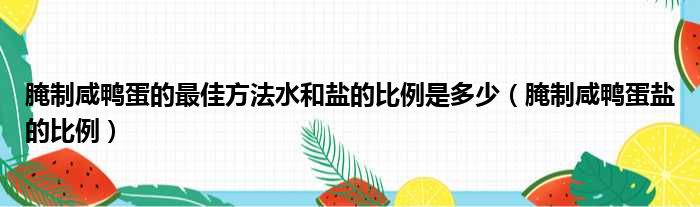 腌制咸鸭蛋的最佳方法水和盐的比例是多少(腌制咸鸭蛋盐的比例)