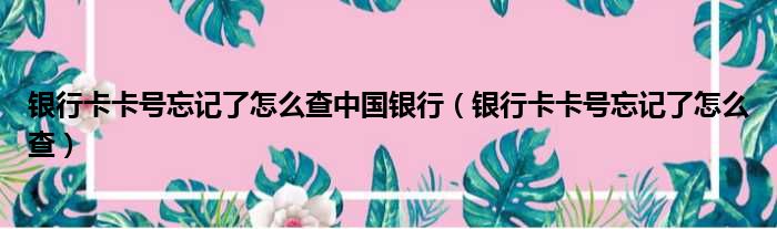 银行卡卡号忘记了怎么查中国银行(银行卡卡号忘记了怎么查)