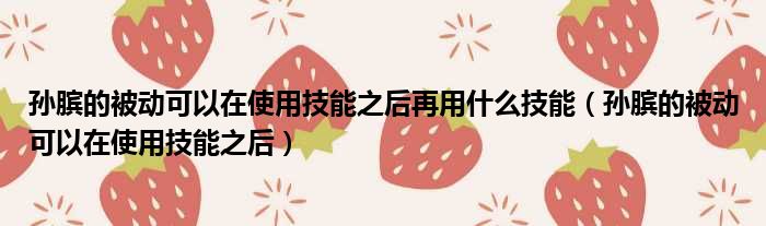 孙膑的被动可以在使用技能之后再用什么技能(孙膑的被动可以在使用技能之后)