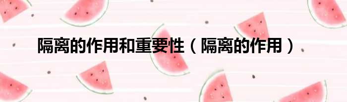 隔离的作用和重要性(隔离的作用)