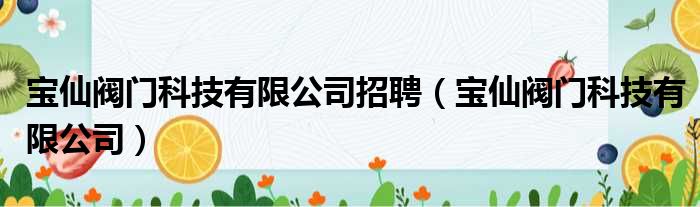 宝仙阀门科技有限公司招聘(宝仙阀门科技有限公司)
