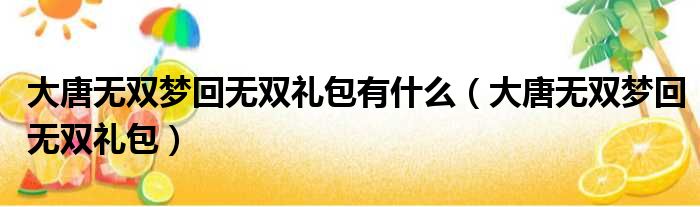 大唐无双梦回无双礼包有什么(大唐无双梦回无双礼包)