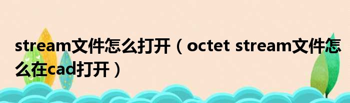 导读 大家好,小东方来为大家解答以上的问题。stream文件怎么打开,octet stream文件怎么在cad打开这个很多人还不知道,现在让我们一起来看看吧!