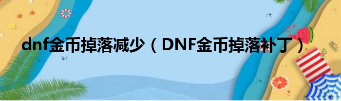 大家好,小东方来为大家解答以上的问题。dnf金币掉落减少,DNF金币掉落补丁这个很多人还不知道,现在让我们一起来看看吧!