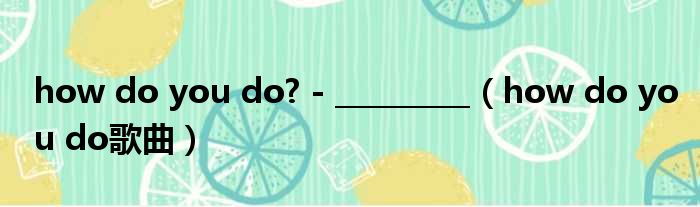 导读 大家好,小东方来为大家解答以上的问题。how do you do? - _________,how do you do歌曲这个很多人还不知道,现在让我们一起来看看