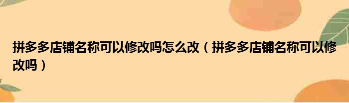 拼多多店铺名称可以修改吗怎么改(拼多多店铺名称可以修改吗)