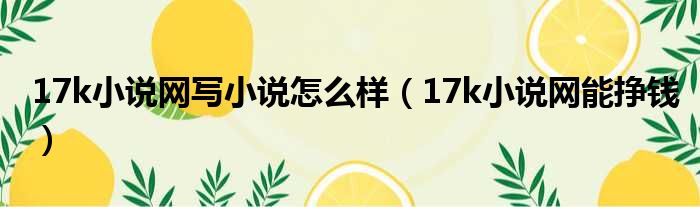 17k小说网写小说怎么样(17k小说网能挣钱)