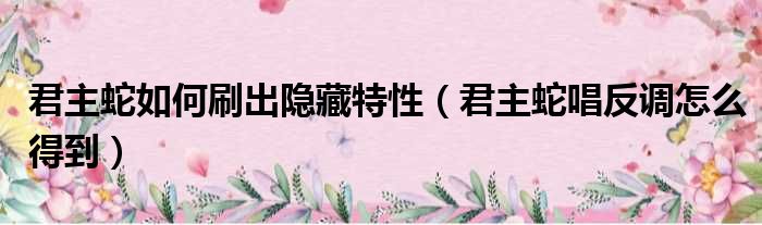 君主蛇如何刷出隐藏特性(君主蛇唱反调怎么得到)