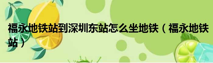 福永地铁站到深圳东站怎么坐地铁(福永地铁站)