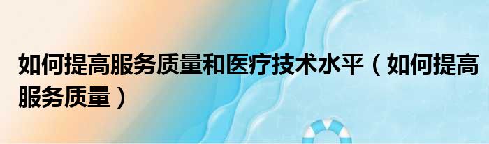 如何提高服务质量和医疗技术水平(如何提高服务质量)