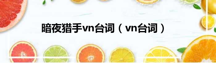 大家好,小东方来为大家解答以上的问题。暗夜猎手vn台词,vn台词这个很多人还不知道,现在让我们一起来看看吧!