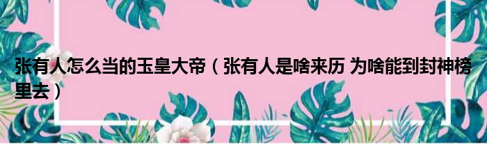 导读 大家好,小东方来为大家解答以上的问题。张有人怎么当的玉皇大帝,张有人是啥来历 为啥能到封神榜里去这个很多人还不知道,现在让我们一起来