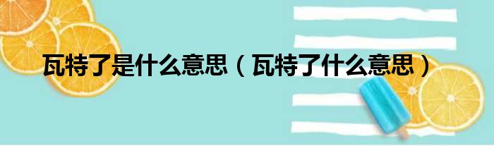 大家好,小东方来为大家解答以上的问题。瓦特了是什么意思,瓦特了什么意思这个很多人还不知道,现在让我们一起来看看吧!