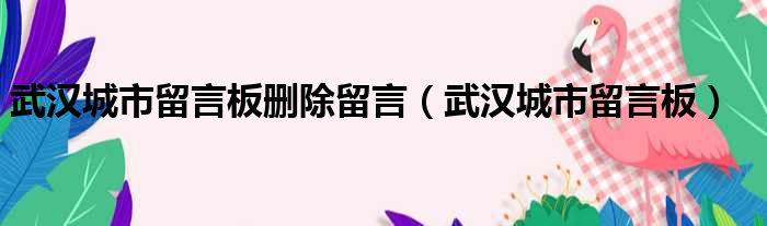 导读 大家好,小东方来为大家解答以上的问题。武汉城市留言板删除留言,武汉城市留言板这个很多人还不知道,现在让我们一起来看看吧!1、答:武汉城