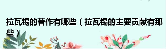 拉瓦锡的著作有哪些(拉瓦锡的主要贡献有那些)