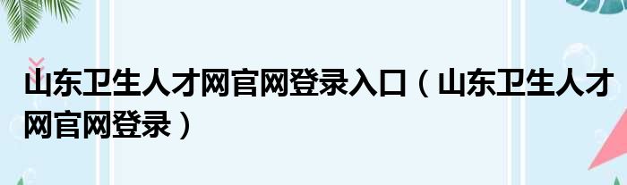 山东卫生人才网官网登录入口(山东卫生人才网官网登录)