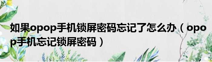 如果opop手机锁屏密码忘记了怎么办(opop手机忘记锁屏密码)