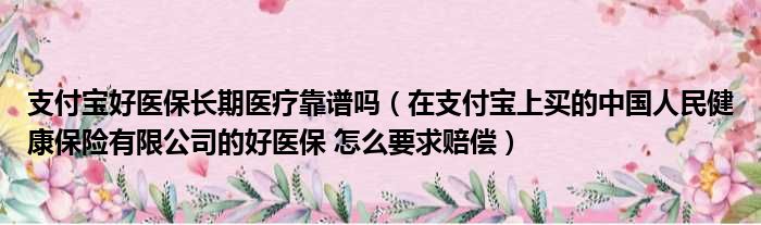 支付宝好医保长期医疗靠谱吗(在支付宝上买的中国人民健康保险有限公司的好医保 怎么要求赔偿)