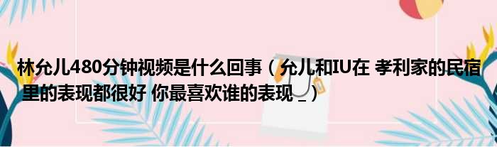 导读 大家好,小东方来为大家解答以上的问题。林允儿480分钟视频是什么回事,允儿和IU在 孝利家的民宿 里的表现都很好 你最喜欢谁的表现 _这