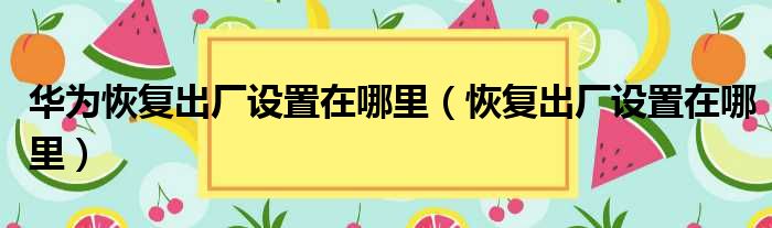 华为恢复出厂设置在哪里(恢复出厂设置在哪里)