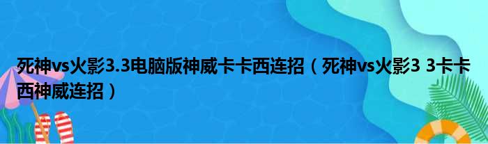 死神vs火影3.3电脑版神威卡卡西连招(死神vs火影3 3卡卡西神威连招)