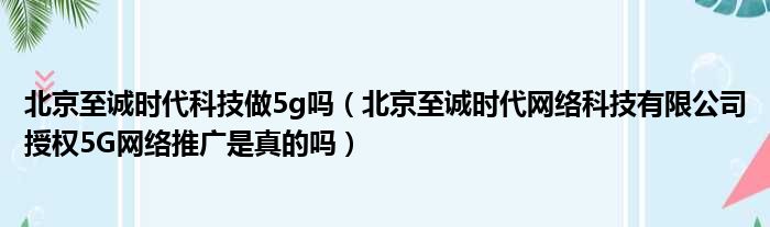 北京至诚时代科技做5g吗(北京至诚时代网络科技有限公司授权5G网络推广是真的吗)