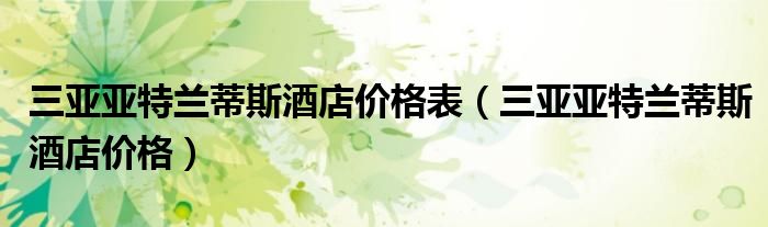 三亚亚特兰蒂斯酒店价格表(三亚亚特兰蒂斯酒店价格)