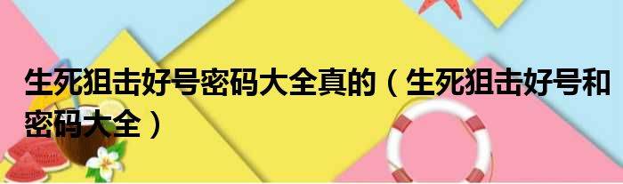 导读 大家好,小东方来为大家解答以上的问题。生死狙击好号密码大全真的,生死狙击好号和密码大全这个很多人还不知道,现在让我们一起来看看吧!1