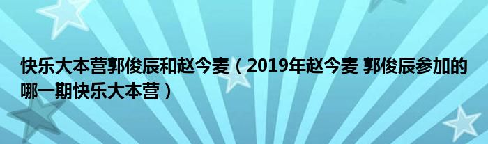 快乐大本营郭俊辰和赵今麦(2019年赵今麦 郭俊辰参加的哪一期快乐大本营)