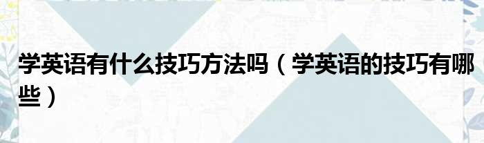 学英语有什么技巧方法吗(学英语的技巧有哪些)