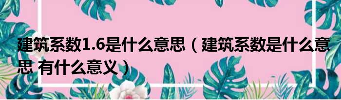 建筑系数1.6是什么意思(建筑系数是什么意思 有什么意义)