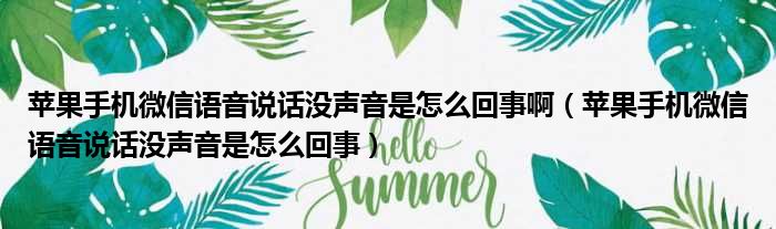 苹果手机微信语音说话没声音是怎么回事啊(苹果手机微信语音说话没声音是怎么回事)