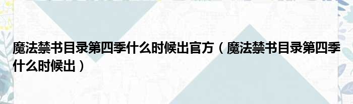 魔法禁书目录第四季什么时候出官方(魔法禁书目录第四季什么时候出)