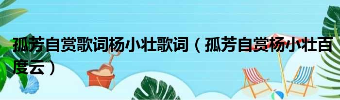 孤芳自赏歌词杨小壮歌词(孤芳自赏杨小壮百度云)