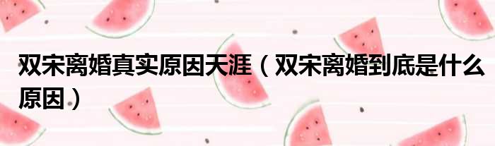 双宋离婚真实原因天涯(双宋离婚到底是什么原因)