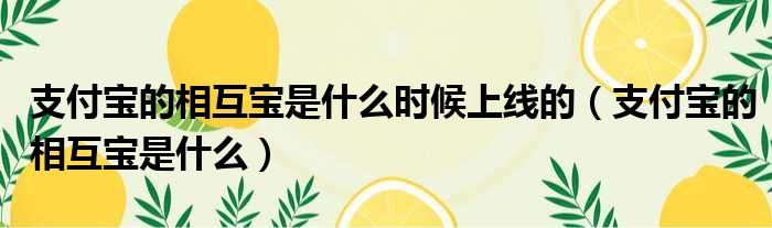 支付宝的相互宝是什么时候上线的(支付宝的相互宝是什么)