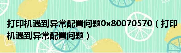 打印机遇到异常配置问题0x80070570(打印机遇到异常配置问题)