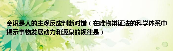 意识是人的主观反应判断对错(在唯物辩证法的科学体系中揭示事物发展动力和源泉的规律是)