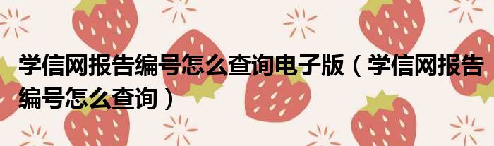 学信网报告编号怎么查询电子版(学信网报告编号怎么查询)