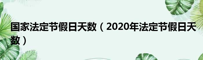 导读 大家好,小东方来为大家解答以上的问题。国家法定节假日天数,2020年法定节假日天数这个很多人还不知道,现在让我们一起来看看吧!1、2020年