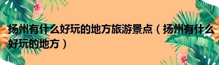 扬州有什么好玩的地方旅游景点(扬州有什么好玩的地方)